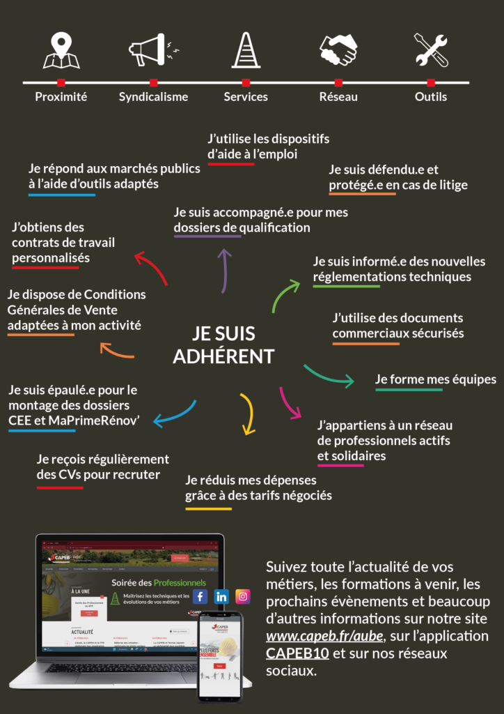La CAPEB & CNATP de l’Aube propose des formations techniques, de sécurité et de gestion aux artisans du Bâtiment et des Travaux Publics. Parallèlement, en tant qu’adhérent au syndicat, vous bénéficiez de nombreux autres services d’accompagnement et d’opportunités professionnelles.