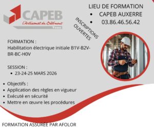 Habilitation électrique initiale B1V-B2V-BR-BC-HOV – CAPEB 89